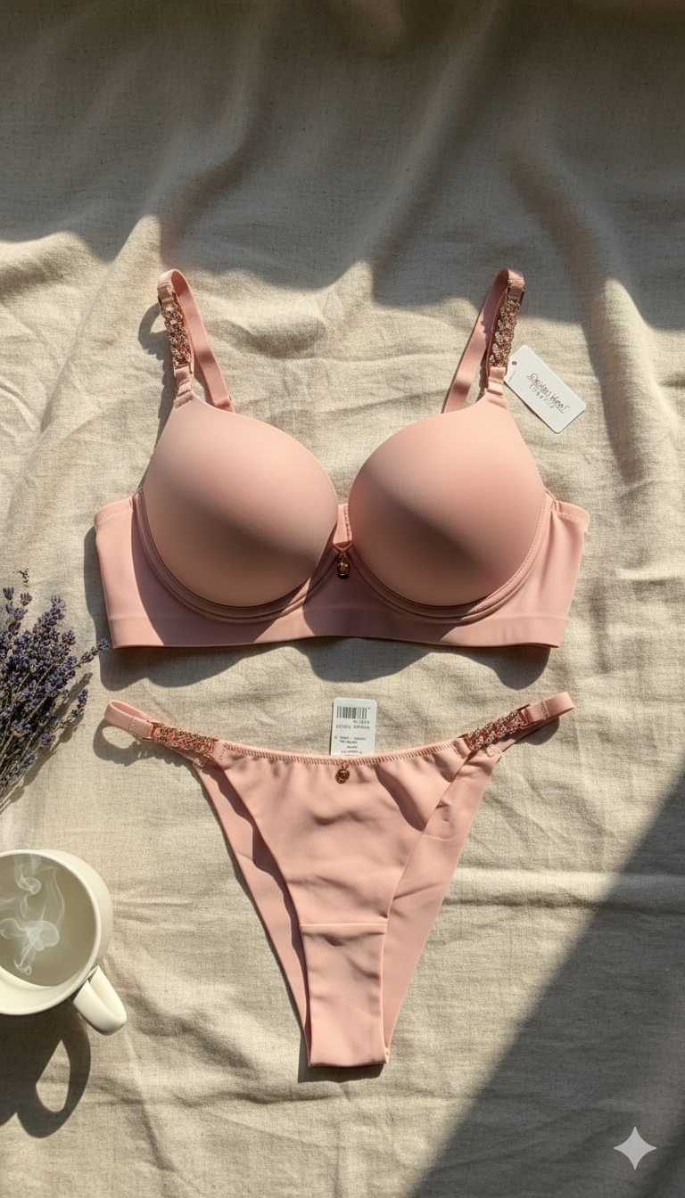 Crafted from a deep, richly colored fabric (like deep sapphire, forest green, or obsidian black), the set offers a flawless fit and supreme comfort. The “secret” lies in its refined details: perhaps a subtle lattice back, a touch of intricate embroidery, or a deep V-plunge that hints at the mystery beneath. This is more than lingerie—it’s an intimate luxury, exclusively yours.
