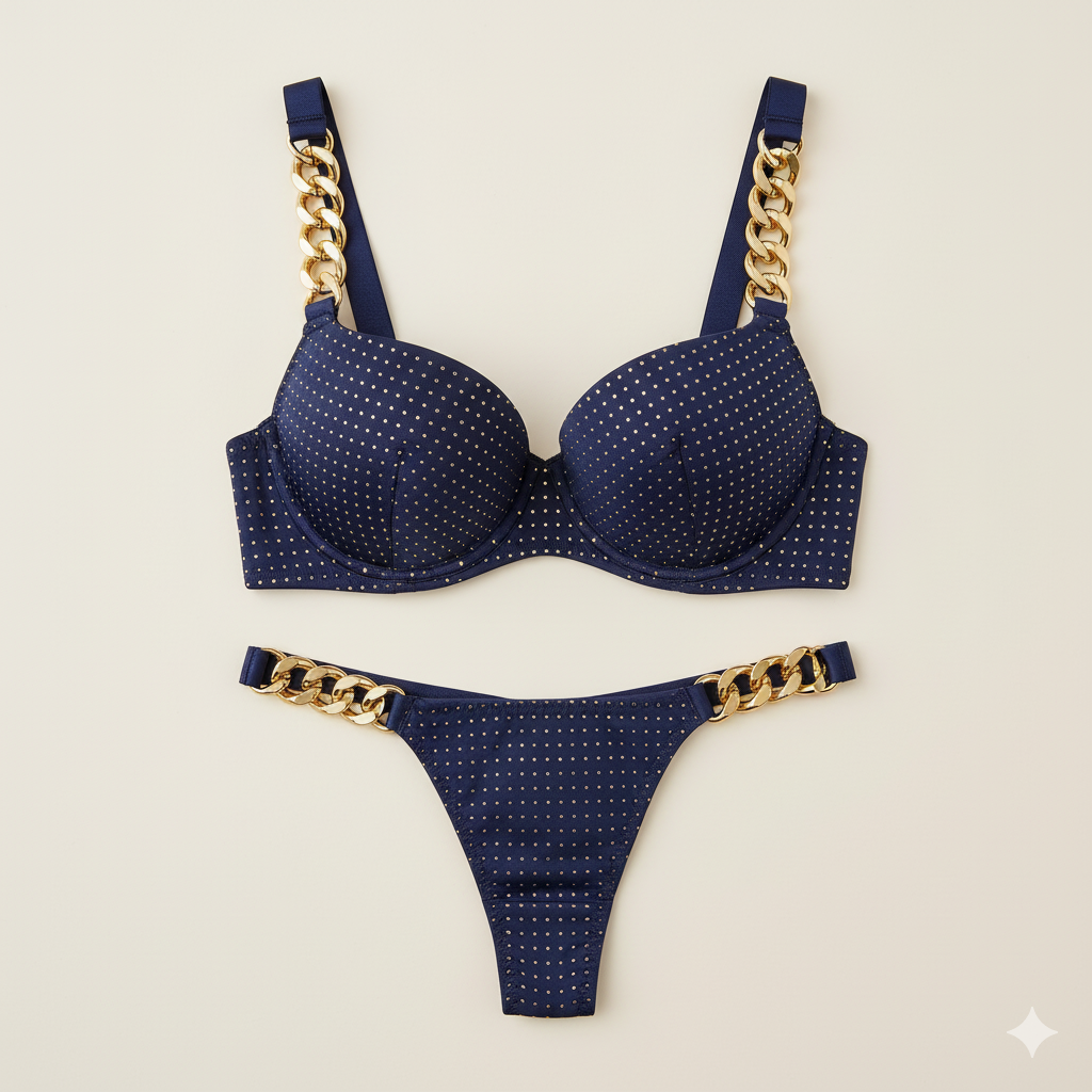 Discover the sleek, sophisticated power of the Obsidian Charm Bra Set. Inspired by the perfectly smooth, deep black elegance of volcanic glass, this set is defined by its flawless silhouette and minimalist luxury. It’s designed for those who appreciate dramatic beauty that is both refined and ultra-modern.