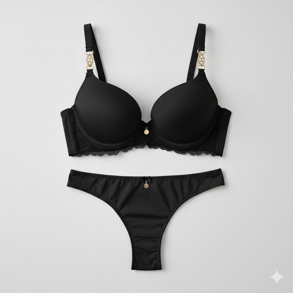 Embrace the dual nature of beauty with the Rose Black Bra Set. This alluring collection unites the captivating depth of true black with the delicate, romantic essence of the rose. It is designed for the woman who finds confidence in sophistication and power in delicate detail.